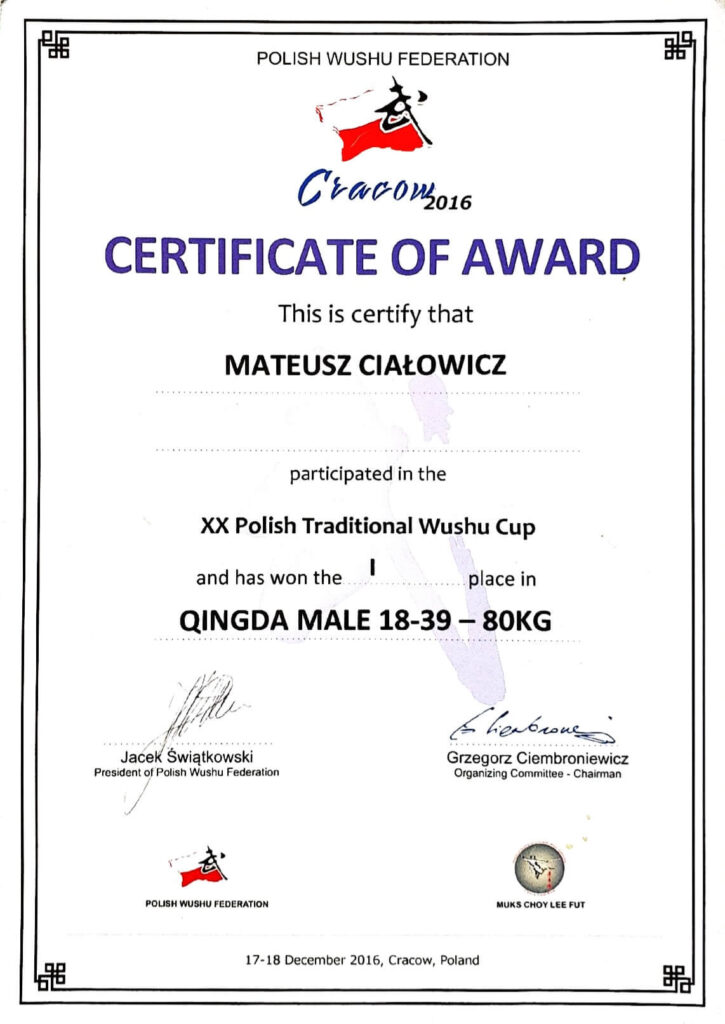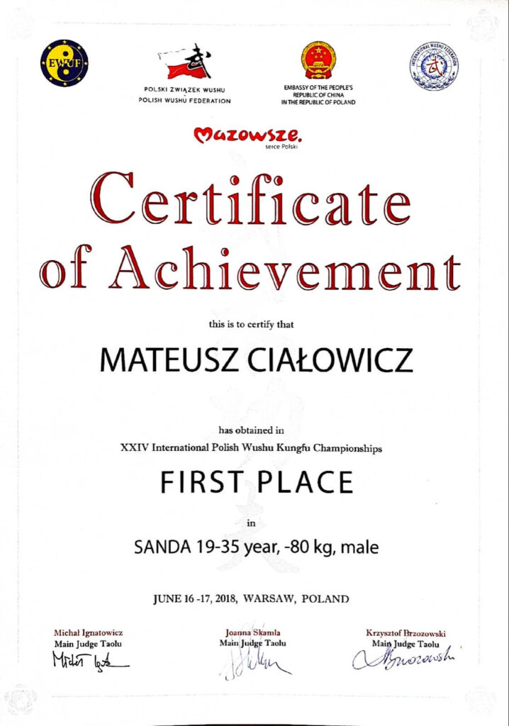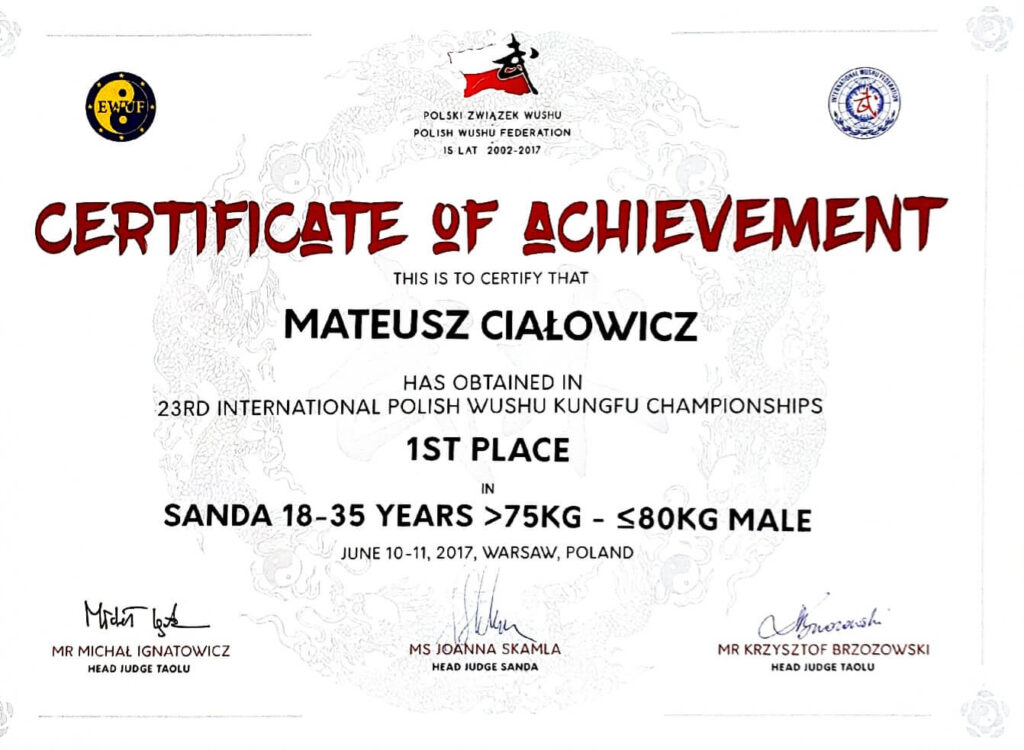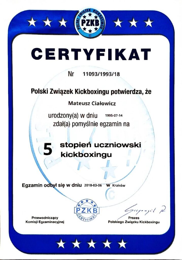 Jego liczne sukcesy na arenie krajowej i międzynarodowej gwarantują profesjonalne podejście do każdego treningu. Dzięki indywidualnemu podejściu do klienta, Mateusz pomaga nie tylko w budowaniu formy fizycznej, ale także rozwijaniu umiejętności walki oraz pewności siebie.